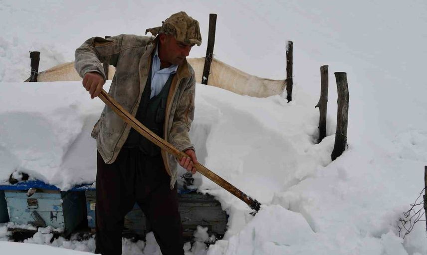 İlçede etkili olan yoğun kar yağışının ardından, dağdan kopan kar kütleleri çığa neden oldu. Üretici Mustafa Özdemir tarafından kışlağa bırakılan bal arıları, bu tehlikeden nasibini aldı.