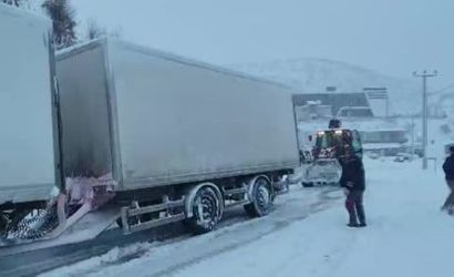 Şırnak’ın Uludere ilçesinde bulunan Şenoba beldesinde, Hakkari’den Şırnak’a giden yüzlerce tır kar nedeniyle yolda kaldı. Belde başkanı Alihan Babat tarafından yönlendirilen ekipler, bölgedeki araçların kurtarılması için seferber oldu.