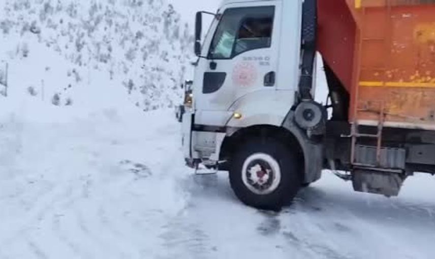 Kar ile mücadele timleri, yolu trafiğe açmak için seferber oldu. Kara saplanan araçların kurtarılmasıyla birlikte ekipler, yolları açma çalışmalarına devam ediyor.