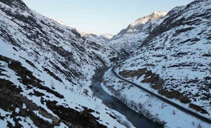 Şırnak, Beytüşşebap ilçesinde etkili olan kar yağışı, Kanlıdere olarak bilinen bölgelerde muhteşem manzaralar yarattı.