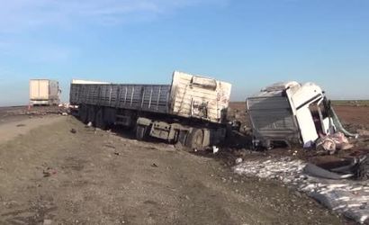 ŞIRNAK’TA CİZRE-NUSAYBİN KARAYOLUNDA İKİ TIRIN ÇARPIŞMASI SONUCU YAŞANAN TRAFİK KAZASINDA İKİ KİŞİ YARALANIRKEN, ARAÇLAR HURDAYA DÖNDÜ. TIR’DAKİ GIDA MADDELERİ DE YOLA SAÇILDI.