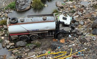Şırnak'ın Uludere ilçesinde, kaygan bir yolda direksiyon hakimiyetini kaybeden su tankeri uçurumdan yuvarlandı. Kazada sürücü yaralandı.