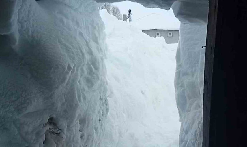 Son günlerde 3 metreyi bulan kar kalınlığı ile karşılaşan Şahin, ahırının kapısını bir türlü bulamadı. Koca bir alana yayılan kar nedeniyle kaybolan kapıyı aramak için yaklaşık 2 saat uğraş vermek zorunda kaldı.