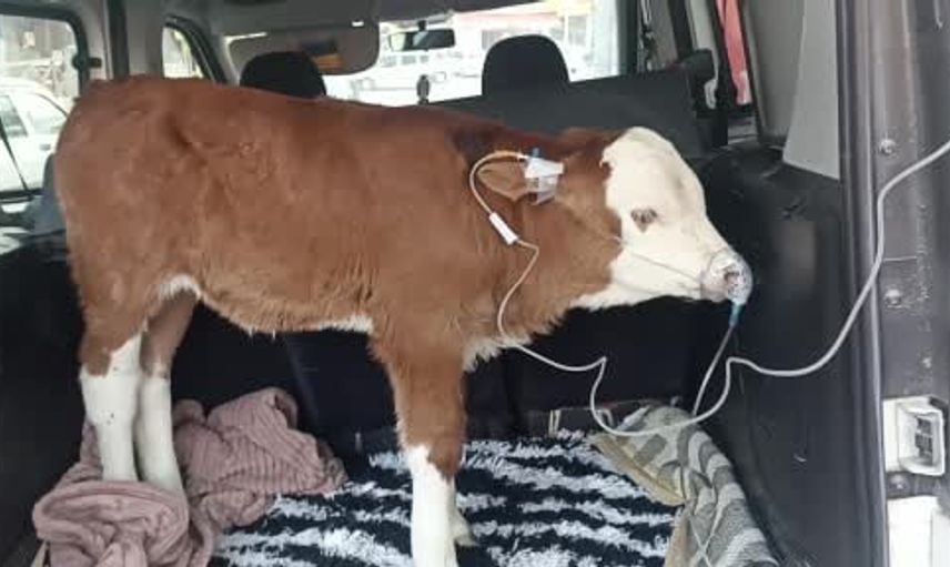 Dumandan zehirlenen 6 günlük buzağıya bagajda acil müdahale
