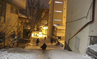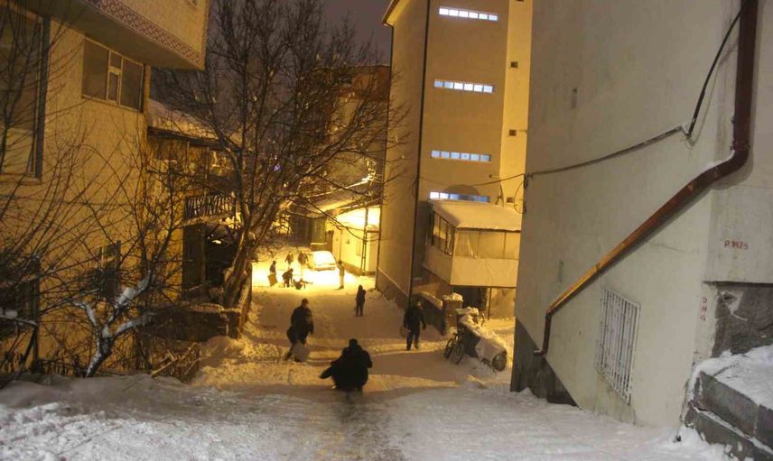 Vatandaşlar, bir yandan ateş yakarak ısınmaya çalışırken, diğer yandan ellerindeki tepsiler ve plastik şişelerle kayarak eğlenceli vakit geçirdi. Mahalledeki kar eğlencesi, gece boyunca devam ederken, herkes bu güzel anları paylaşmanın mutluluğunu yaşadı.