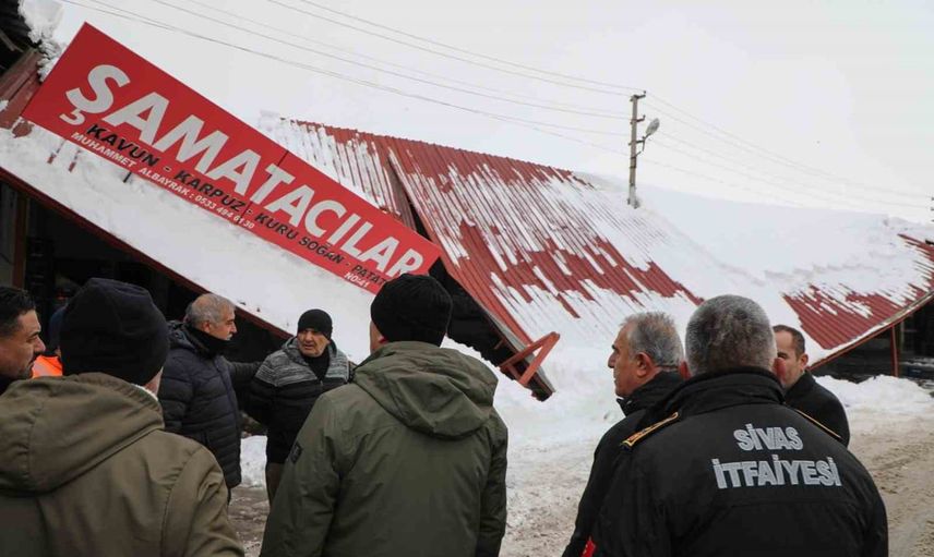 Sivas’ta etkili olan yoğun kar yağışı, birçok iş yerinin önündeki sundurmaların çökmesine yol açtı. Toptan sebze satan bazı iş yerlerinde yaşanan bu olayda, can kaybı yaşanmamış olmasına rağmen maddi hasar meydana geldi.
