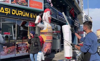 Kış mevsiminin etkili olduğu günlerde, döner ustası Güner, biriken karları ustalıkla döner şeklinde şekillendirdi. Elindeki döner bıçağıyla, adeta et ve tavuk döner keser gibi karı kesmeye başlayan Güner, hazırladığı kardan döneri çevredeki vatandaşlara ikram etti.