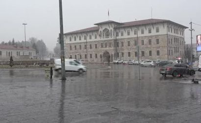 Sivas'ta sabah saatlerinde etkili olan yağmur, yerini kar yağışına bıraktı. Lapa lapa yağmayan kar, kent merkezinde kartpostallık manzaralar ortaya çıkardı.