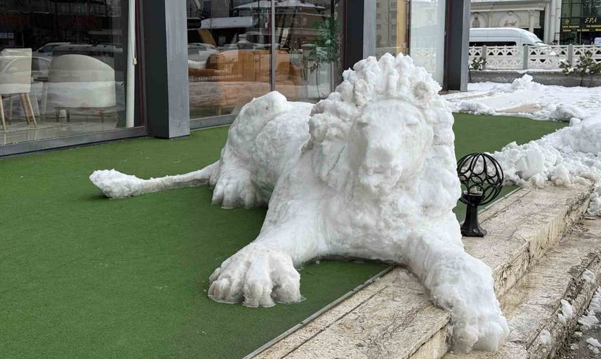 Sivas'ta kar yağışını sanatsal bir çalışmaya dönüştüren Fatih Coşkun, kardan adam yapmak yerine kardan aslan yapma fikrini benimsedi. Coşkun, kaşık yardımıyla 3 saat boyunca detaylı bir şekilde şekillendirdiği kardan aslan, çevredekilerin ilgisini topladı.