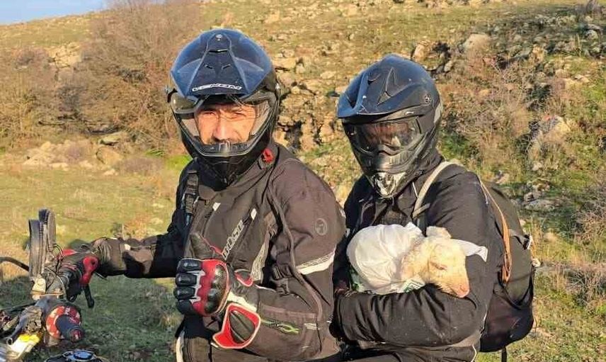 Eskişehir’de motosikletleriyle antrenman yapan milli sporcu Gökay Konuk ve arkadaşları, soğuk havada tek başına buldukları yeni doğmuş kuzuyu yaklaşık 3 kilometre ötedeki annesiyle buluşturdu.