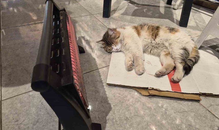 Olay, Ertuğrulgazi Mahallesi Çilem Caddesi'nde gerçekleşti. Sokak kedisi, bakkal dükkanına girerek esnafın kapısından girdi. İşletme sahibi, kediyi nazikçe misafir ederek ona sıcak bir ortam sundu. Elektrikli ısıtıcının karşısına geçip, yere serilen kartonun üstünde huzur içinde uykuya daldı.