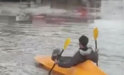 ADANA’DA SAĞANAK YAĞIŞ SONRASI SOKAKLAR ADETA GÖLE DÖNERKEN BİR VATANDAŞIN KANOSUYLA SOKAKTA GEZMESİ ANBEAN CEP TELEFONUYLA GÖRÜNTÜLENDİ.