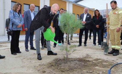 Konuşmaların ardından, ilçe protokolü, öğretmenler ve öğrenciler fidanları toprakla buluşturarak 'Yeşil Vatan' için anlamlı bir katkıda bulundu.