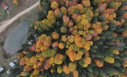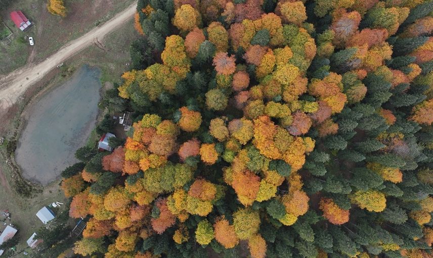 Düzce, Sakarya ve Bolu'daki sonbahar renklerinin oluşturduğu bu ahenk, dronla da görüntülenerek paylaşılmakta.