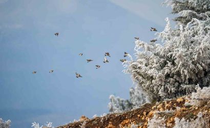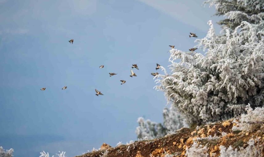 Soğuk hava şartları, bölgede yaşayan yaban hayvanlarını da olumsuz etkiliyor. Kar olmamasına rağmen, zemin buzla kaplandığı için yiyecek bulmakta zorlanan saka kuşları, beyaz buz katmanının altında yem aramakta zorluk çekiyor.