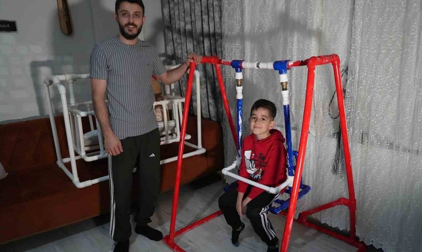 Samsun'da 26 yaşındaki tesisatçı Furkan Karadağ, yakında doğacak kızına sıra dışı bir hediye hazırlamak için su borularından beşik yaptı. Bu yaratıcı projeye ek olarak, su borularından sökülebilir ve takılabilir bir salıncak tasarladı.