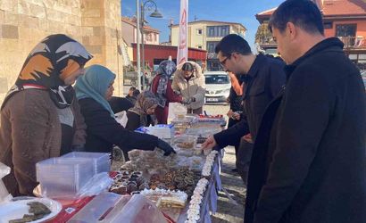 Selçuklu Kent Meydanı'nda kurulan çarşıda, Türkiye Diyanet Vakfı (TDV) gönüllülerinin hazırladığı çeşitli yiyecekler satışa sunuldu.