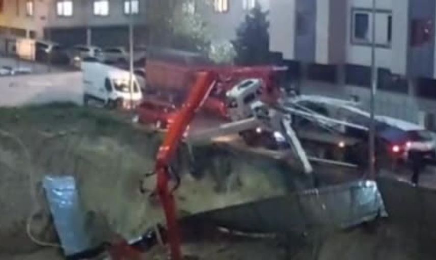 İnşaat alanında, o anda beton döküm işlemleri devam etmekteydi. Bu süreçte, beton pompası yan yattı, durumu fark eden vatandaşlar durumu hemen yetkililere bildirdi.