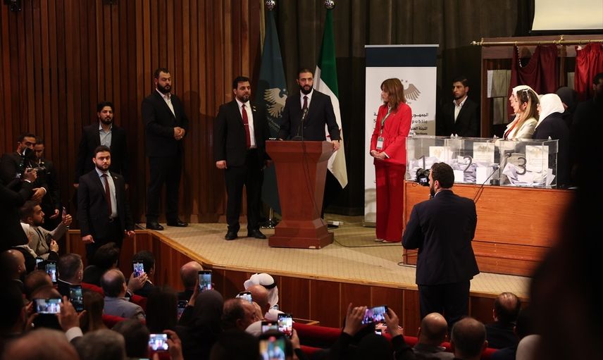 Seçim sürecine, Şam’daki Ulusal Kütüphane’de yapılan toplantıya Filistin ve Yemen büyükelçileri ile Türkiye’nin Şam Geçici Maslahatgüzarı Burhan Köroğlu da gözlemci olarak katıldı.