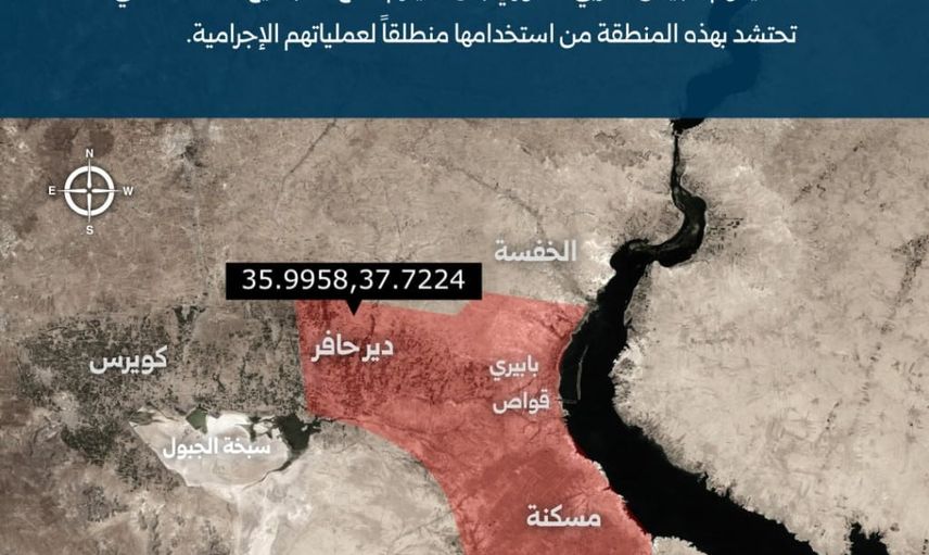 Yayımlanan haritada, Fırat Nehri’nin batı kıyısındaki kısımlar arasında Deir Hafer, Meskene, Babiri ve Qawas gibi alanlar yer alıyor.