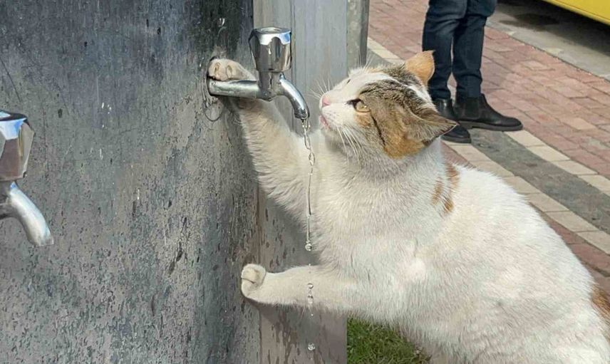 Batman'da, soğuk havalarda susuz kalmış bir kedi, Kuyubaşı Mahallesi'nde bulunan bir otobüs durağındaki çeşmeye gelerek adeta umudunu aradı. Susuzluk nedeniyle bitkin düşen kedinin durumunu gören duyarlı vatandaşlar, hemen musluğu açtı.