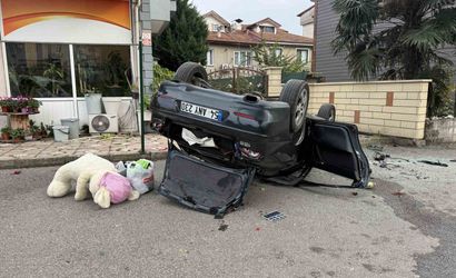 H.Y., 54 ANY 230 plakalı aracıyla seyir halindeyken bir anda direksiyon hakimiyetini kaybetti ve otomobil taklalar atarak yaklaşık 3 metre yüksekten alt sokağa düştü.