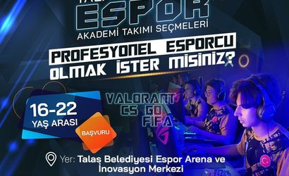 TALAS BELEDİYESİ ESPOR AKADEMİ TAKIMI İÇİN OYUNCU SEÇMELERİ BAŞLIYOR. PROFESYONEL E-SPORCU OLMA HAYALİ KURAN GENÇLER, BU BÜYÜK FIRSATLA YETENEKLERİNİ VİTRİNE ÇIKARACAK.
