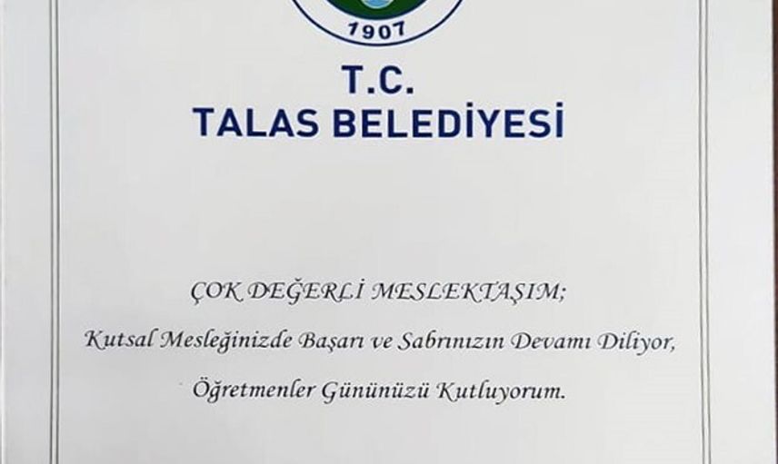 Talas Belediye Başkanı Mustafa Yalçın, hediyelerin içinde öğretmenlere yönelik kaleme alınmış samimi bir mesajı da bulundu. Mesajında, "Çok değerli meslektaşım; Kutsal mesleğinizde başarı ve sabrınızın devamını diliyor, Öğretmenler Gününüzü kutluyorum," ifadelerini kullanarak, öğretmenlere olan destek ve sevgisini vurguladı.