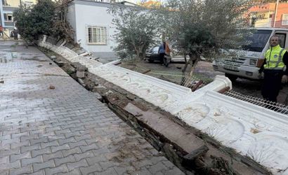 Suya gömülen bahçenin istinat duvarının yıkıldığı anlar, cep telefonu kamerasına yansıdı. Görüntülerde, su dolu bahçeden akarak diğer siteye taşan suyun görüntüleri yer aldı.