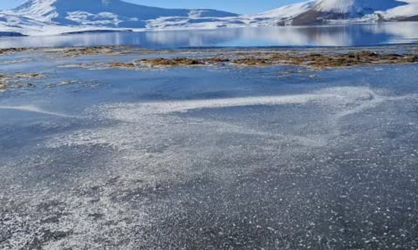 Ağrı'nın Taşlıçay ilçesinde bulunan Balık Gölü, mevsim normallerinin altında seyreden sıcaklıklar nedeniyle kısmen buz tutmuştur.