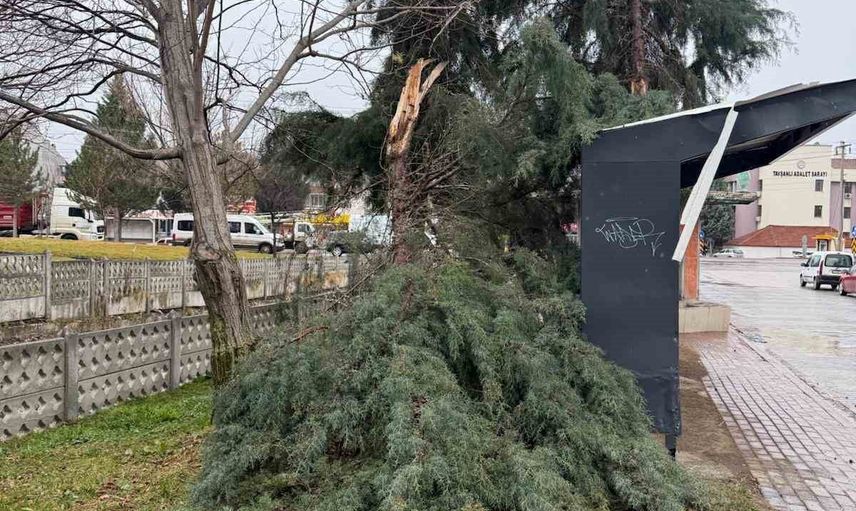 TAVŞANLI'DA ŞİDDETLİ RÜZGAR AĞAÇ DEVİRDİ