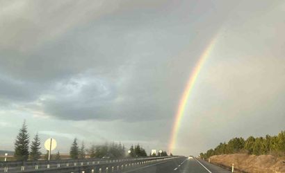 Yağmur sonrası oluşan bu doğal güzellik, Tavşanlı'da kısa süreli de olsa gökyüzünde renkli görüntülere sahne oldu.