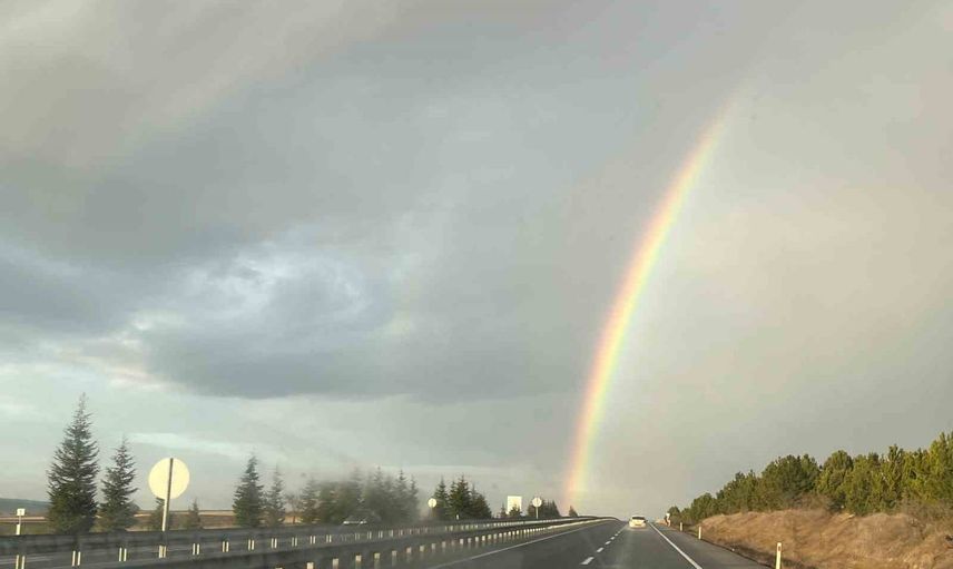 Yağmur sonrasında havanın açılmasıyla birlikte gökyüzünde oluşan renk cümbüşü, ilçenin birçok noktasından net bir şekilde görülebiliyordu. Gökkuşağı, adeta bir görsel şölen sunarken, o anlar vatandaşlar tarafından cep telefonlarıyla ölümsüzleştirildi.