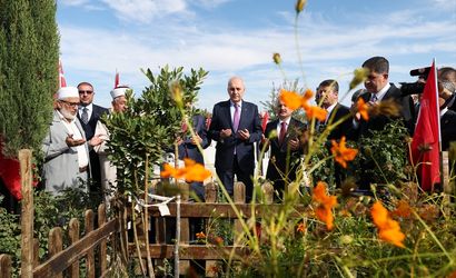 Mezarlara karanfil bırakan Kurtulmuş, burada okunan Kur'an-ı Kerim'in ardından yapılan duaya da katıldı.