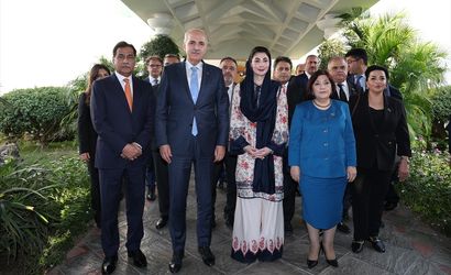 TBMM Başkanı Numan Kurtulmuş, Pakistan'ın Pencap Eyaleti Başbakanı Meryem Navaz Şerif (sağ 2) ile görüştü. Ziyarette, Pakistan Ulusal Meclisi Başkanı Serdar Ayaz Sadık (solda) ve Azerbaycan Milli Meclisi Başkanı Sahiba Gafarova (sağda) da yer aldı.