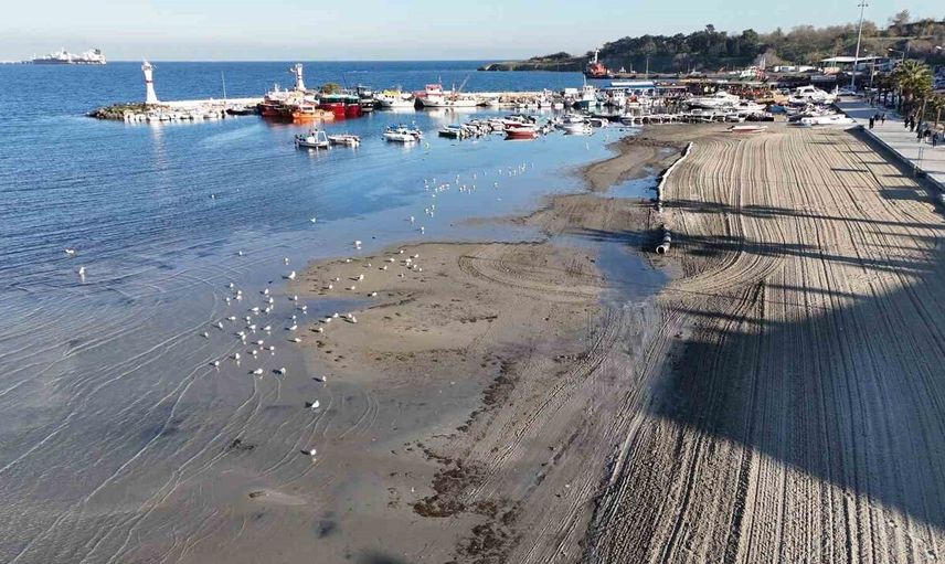 Tekirdağ’ın Marmaraereğlisi ilçesinde, deniz kıyısından yaklaşık 20 metre geri çekilerek önemli bir değişim yaşandı. Bu durum, drone ile havadan görüntülenerek kaydedildi.