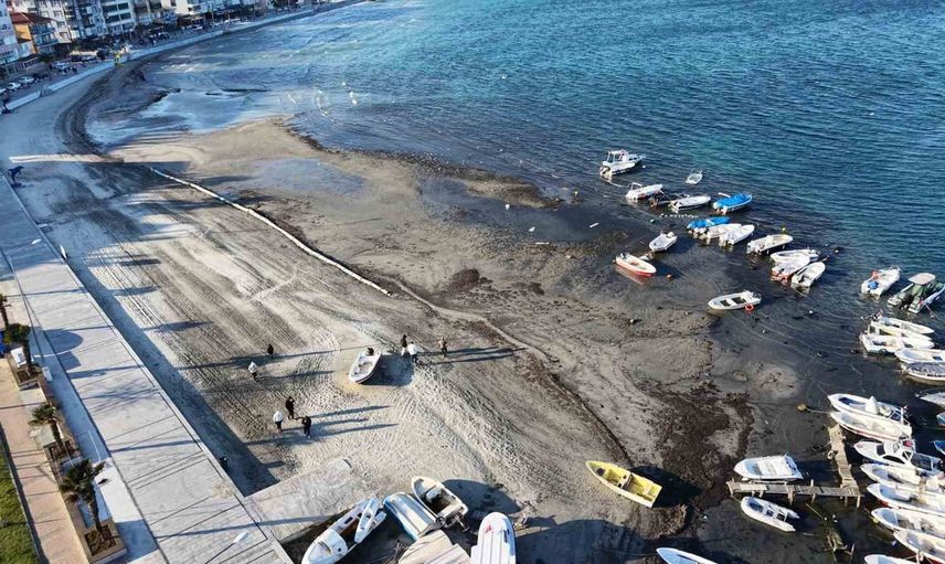 İlçe merkezindeki sahilde, deniz suyunun yaklaşık 10 metre geri çekildiği kaydedildi. Su seviyesindeki azalma ile birlikte, daha önceden deniz altında kalan bazı alanlar tekrar gün yüzüne çıktı.