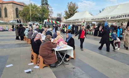 Tekirdağ İl Müftülüğü’nün öncülüğünde sivil toplum kuruluşlarıyla gerçekleştirilen hayır çarşısı, Hasan Ali Yücel Meydanı’nda açıldı. Bu çarşıda satışa sunulan ürünlerin tüm geliri, Filistin'deki ihtiyaç sahibi insanlara ulaştırılacak.