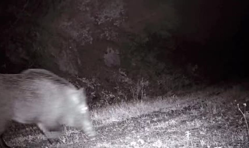 Tekirdağ kırsalında, doğa izleme amacıyla kurulan bir fotokapan, gece saatlerinde harekete geçen bir yaban domuzları sürüsünü görüntüledi.