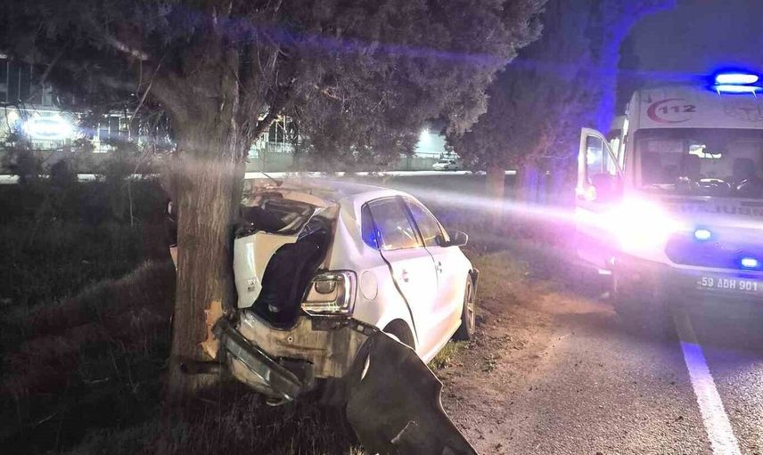 Tekirdağ’ın Ergene ilçesinde, gece yarısı D -100 karayolu Misinli Mahallesi mevkiinde bir trafik kazası meydana geldi. Kontrolden çıkan bir otomobil, yol kenarındaki bir ağaca çarparak durabildi.