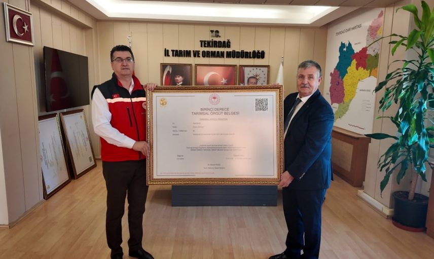 Tekirdağ’da, Tarımsal Amaçlı Örgütlerin Derecelendirilmesine İlişkin Yönetmelik kapsamında, birinci derece tarımsal örgüt belgesi almaya hak kazanan üretici birliklerine belgeleri törenle sunuldu.
