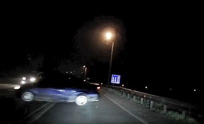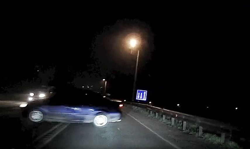 Otomobil, virajı geçerken sürücüsünün kontrolünü kaybetmesi nedeniyle kaymaya başladı. Aynı anda, karşı yönden gelen bir otomobil sürücüsü, kaza anına tanıklık etti ve olası bir çarpışmadan son anda kurtulmayı başardı.