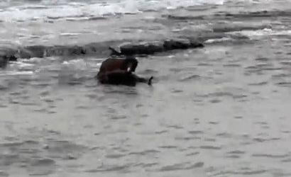 Nesli tehlike altında bulunan su samuru, Tekirdağ sahili boyunca balık avlarken bir cep telefonu kamerasıyla kaydedildi. Sabah saatlerinde sahile yakın bir alanda deniz yüzeyinde avlanan su samuru, dikkat çekici bir an yaşattı.