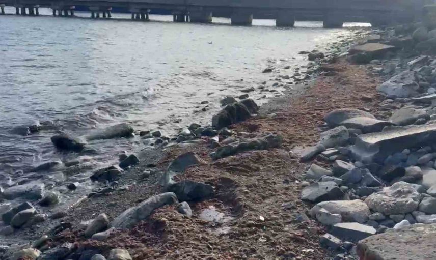 Özellikle sahil şeridinin belirli noktalarında yoğunlaşan kırmızı yosunlar, yürüyüş yapan vatandaşların dikkatini çekmekte. Rüzgarın zaman zaman artmasıyla birlikte, yosun birikimi yer yer sahil boyunca uzandığı gözlemlendi.