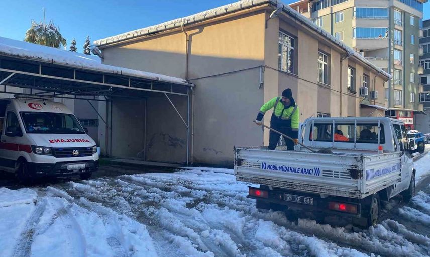 Terme Belediyesi, karla mücadele çalışmalarını yağışın etkisini kaybettiği süre boyunca titizlikle sürdüreceğini duyurdu.