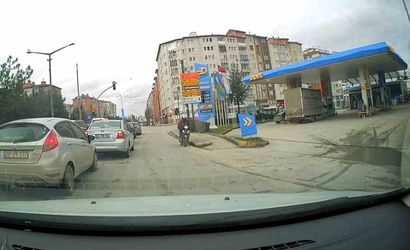 ESKİŞEHİR'DE BİR MOTOSİKLETLİ KURYE TERS YÖNE GİREREK HEM TRAFİĞİ HEM DE KENDİ CANINI TEHLİKEYE ATTI.