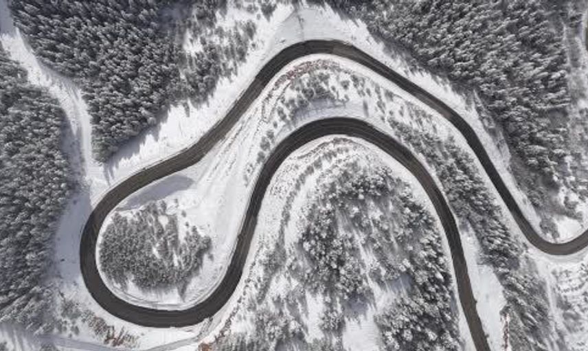 Kar yağışı sonrası Tersun Dağı, kıvrımlı yolları ve dik yamaçları ile sürücülerin yarattığı zorlukları bir kenara bırakarak muhteşem bir manzara sunuyor. Havadan çekilen görüntüler, bu güzel coğrafyanın derinliğini ve doğal güzelliğini gözler önüne seriyor.