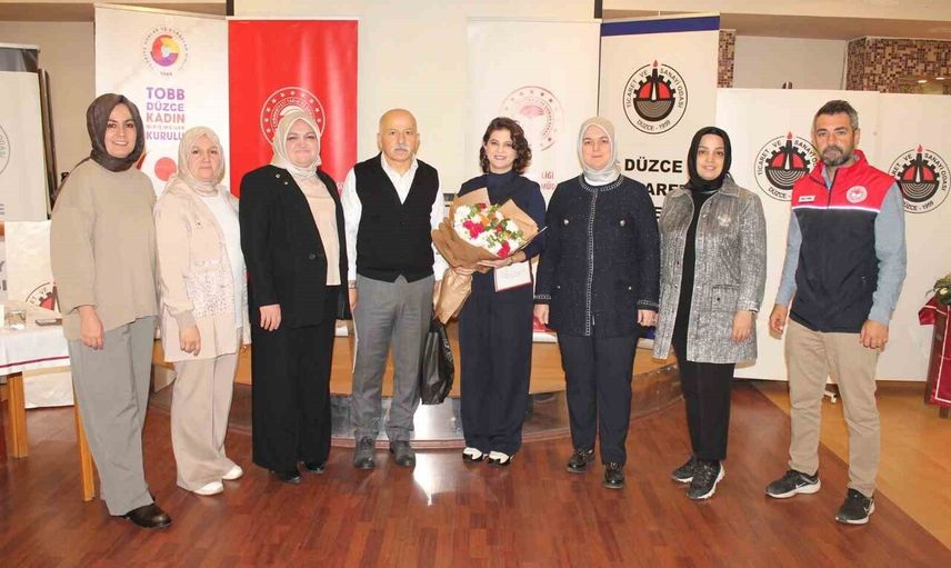 Düzce Ticaret ve Sanayi Odası Toplantı Salonu'nda düzenlenen eğitim programının kapanış gününde, Düzce İl Tarım ve Orman Müdürü Esra Uzun ve TOBB Düzce Kadın Girişimciler Kurulu Başkanı Gökçe Ülkü Altay yer alarak kursiyerlere sertifikalarını dağıttı.