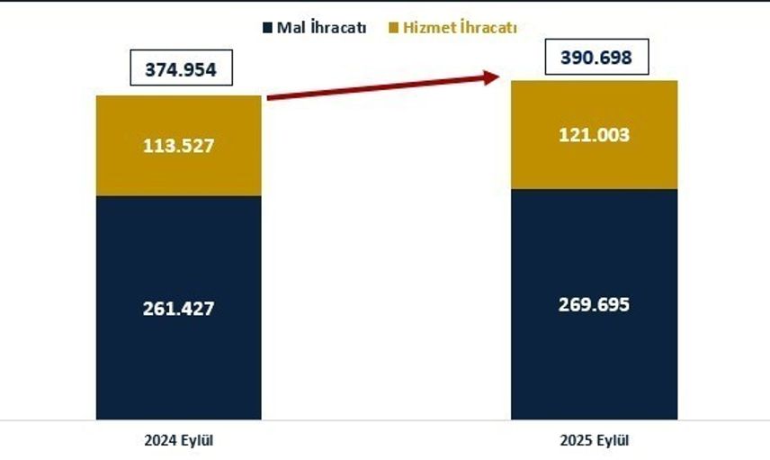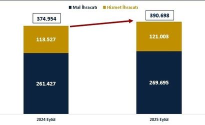 Eylül itibarıyla yıllıklandırılmış mal ve hizmet ihracatının bir önceki yılın aynı dönemine göre %4,2 artarak 390,7 milyar dolara yükseldiğini belirten Bolat, bu hedefin yılın başında belirlenen rakamı aştığını vurguladı. Hizmet ihracatındaki artışlar hakkında konuşan Bolat, eylülde yıllık bazda %6,6 artış ile 121 milyar dolara vardığını dile getirdi ve seyahat gelirlerinin 58,9 milyar dolar, taşımacılık gelirlerinin ise 41,6 milyar dolar olduğunu belirtti.