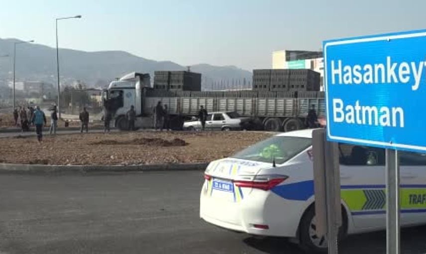 Batman’ın Gercüş ilçesinde, öğle saatlerinde meydana gelen kazada, kavşakta dönüş yapan bir tır, bir otomobile çarptı.